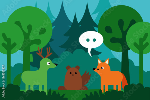 Obraz premium Forest Friends A Charming Illustration of Deer, Bear, and Fox in Conversation