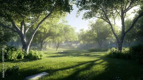 © NY-KSJ, Obraz premium Forest, Glade, Trees, Sunlit Forest Glade