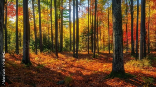 © Влада Яковенко, Fototapeta premium Forest glade with vibrant autumn colors