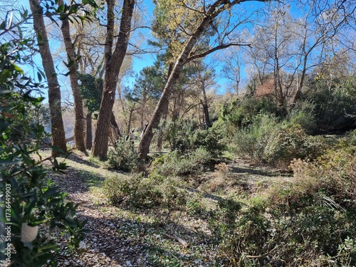 © boudali, Fototapeta premium Forest in autumn, a sunny and quiet day with fallen leaves