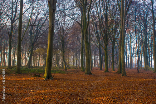 © Miroslawa Drozdowski, Fototapeta premium forest in autumn - foggy morning