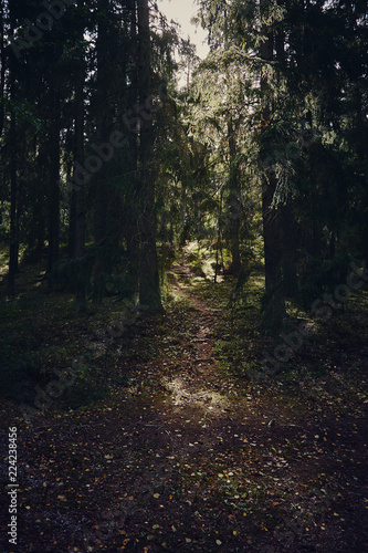 © Natalja, Obraz premium Forest in Autumn time with beautiful sunlight