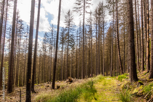 Fototapeta premium Forest in Bohemian Switzerland damaged by European spruce bark beetle, Czech...