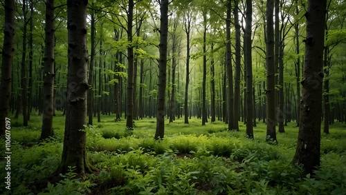 Fototapeta premium Forest in spring, lush greenery and fresh growth.
