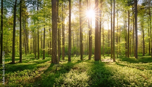 Obraz premium 65 5000 forest in spring with bright sun shining through the trees