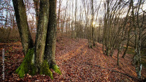 Fototapeta premium Forest in winter with sunshine