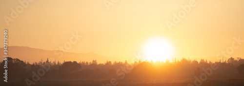 © Aleksei, Fototapeta premium Forest is filled with the warm light of the sunset