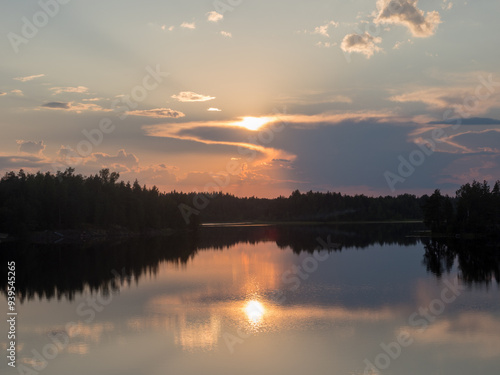 Obraz premium forest lake at sunset