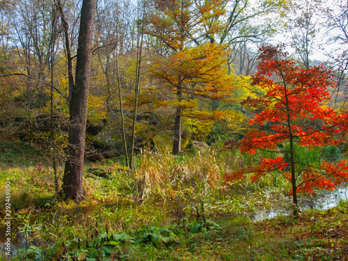 © Valentyn Bilous, Fototapeta premium Forest lake on the background of the autumn forest