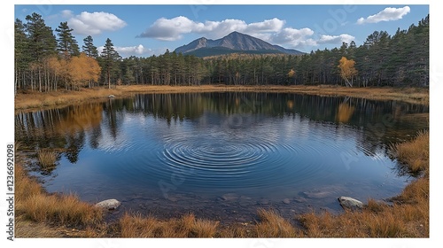 © BlackBell, Fototapeta premium Forest lake ripples mountain reflection