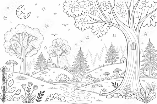 © ANDRIANSYAH STUDIO, Obraz premium Forest landscape, coloring page