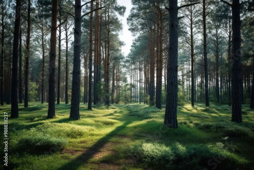 Fototapeta premium Forest landscape sunlight outdoors.