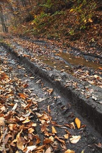 Fototapeta premium Forest landscape with a muddy road.
