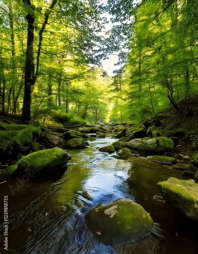 © PandaUniverse, Obraz premium forest landscape with a river