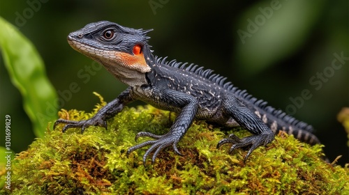 © zeni, Obraz premium Forest Lizard on Moss, Alert, Rainforest Background