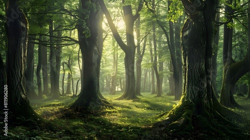 Fototapeta premium Forest Morning: Sunlight Through Trees