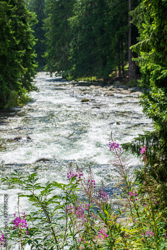 Fototapeta premium forest mountain river with waterfall over the rocks