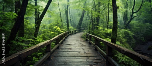 Obraz premium Forest mountain walkway with copy space image