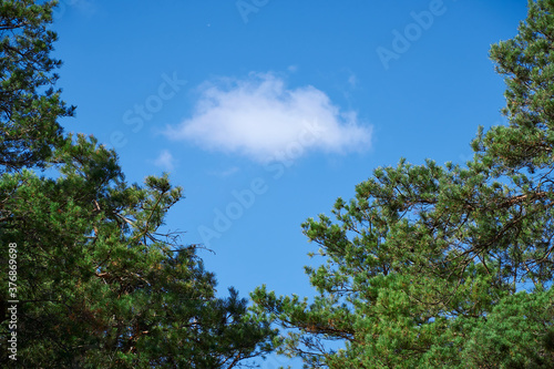 Obraz premium forest on a bright day, cloud in a branches frame - beautiful autumn...