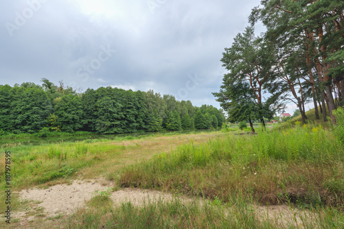 Obraz premium forest on a hillside near a river