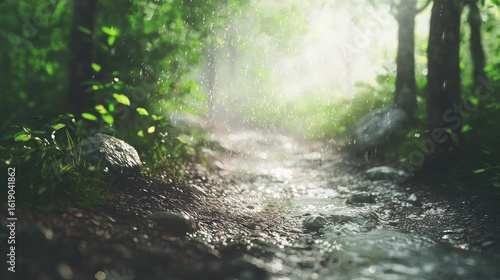 © Yeni, Obraz premium Forest path after rain
