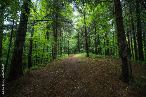 © icephotography, Fototapeta premium Forest path and tall trees in a beautiful natural park reservation