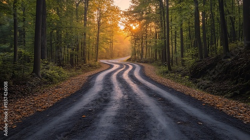 Naklejka premium Forest path at sunset