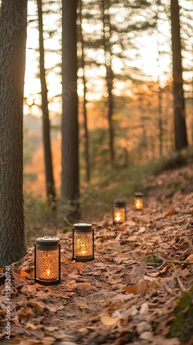 Obraz premium Forest Path Candles Dusk.