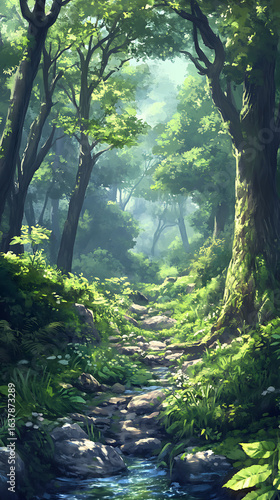 Obraz premium Forest path creek sunlight