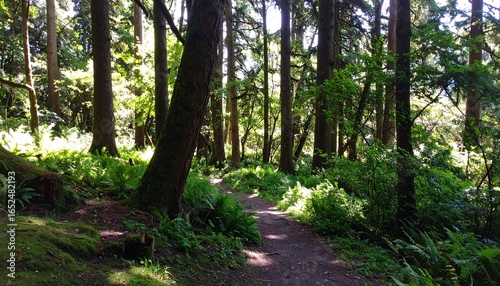 © Vuny, Obraz premium Forest path dappled sunlight
