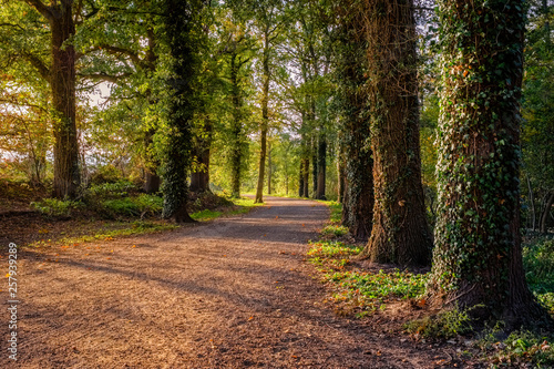 Fototapeta premium Forest path during sunset on a october afternoon (Almelo, Netherlands). The...
