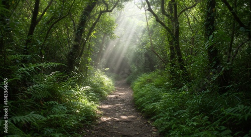 Obraz premium Forest Path Illuminated by Sunlight