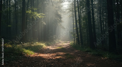 Fototapeta premium Forest path illuminated by sunlight