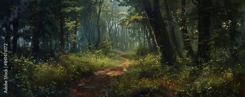 © Denys, Obraz premium Forest path leading to adventure
