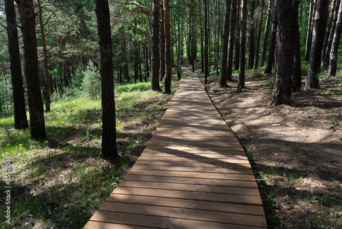 © Vectorina, Obraz premium Forest path lined with wooden blocks.