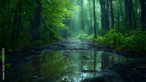 Obraz premium Forest Path Reflection: A Tranquil Nature Scene