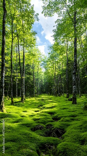 © Vuny, Obraz premium Forest Path Sunlight Moss