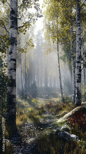 © projek, Fototapeta premium Forest path sunlight tranquil nature