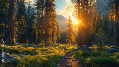 Fototapeta premium Forest Path Sunset Scenic Landscape
