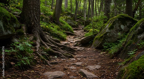 Fototapeta premium Forest Path Surrounded by Lush Greenery