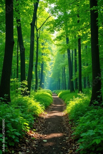© สถาพร บัวระบัติ, Obraz premium Forest path through dense green trees and foliage, nature, lakeside