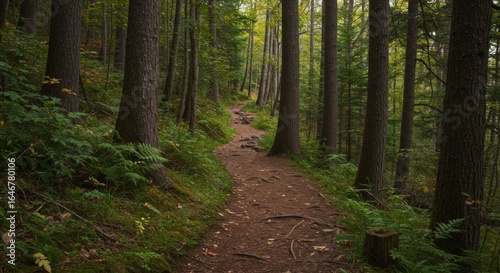 Obraz premium Forest Path Through Lush Green Woods