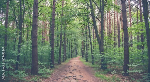 © bambang, Obraz premium Forest Path Through Lush Trees.