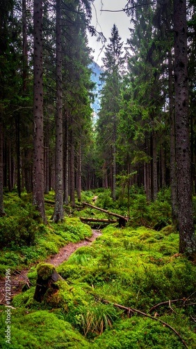 © Vena, Obraz premium Forest path through mossy woods