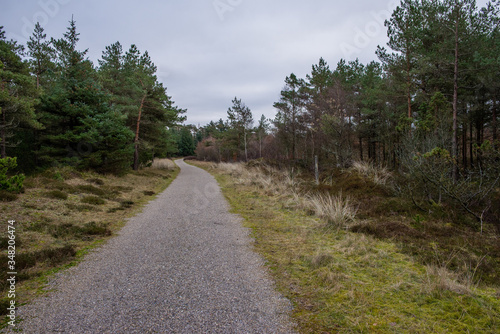 © MG-Pictures, Obraz premium forest path through pine woods in gloomy weather
