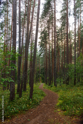© Alex ST, Obraz premium Forest Path Through Tall Pines
