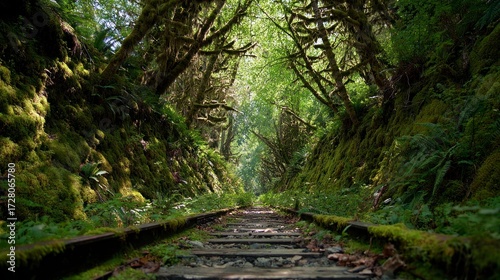 © Fandi Comp, Fototapeta premium Forest path through train tracks