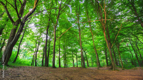 © Pellinni, Obraz premium forest path through wild countryside landscape. outdoor recreation and park visit