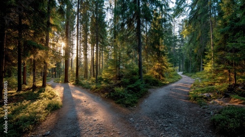 © setiadio, Fototapeta premium Forest path two paths leading to nature
