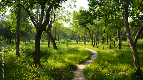 Fototapeta premium Forest path winding through green trees